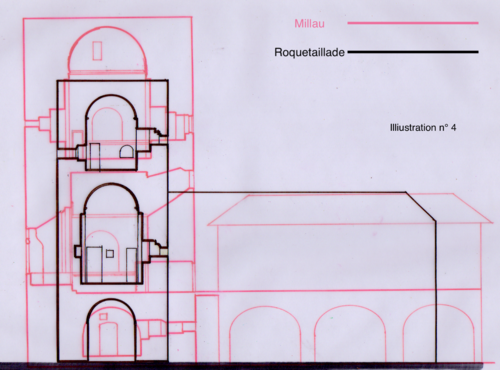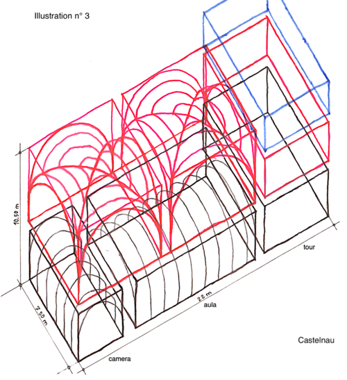 Ce bâtiment est à comparer avec le palais des vicomtes de Millau puis des rois d’Aragon, constitué, à la même époque, d’une tour carré de 10,5 m de coté et haute de 22 m, construite à trois mètres de l’aula de 15 m par 6, positionnée à l’étage du bâtiment voisin.