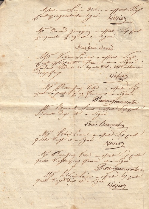 - Monsieur Louis VIVIER a offert six cent cinquante et a signé