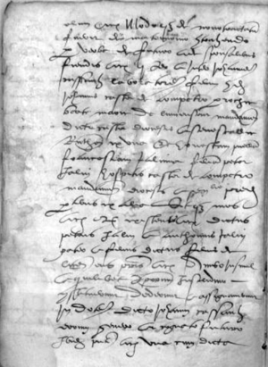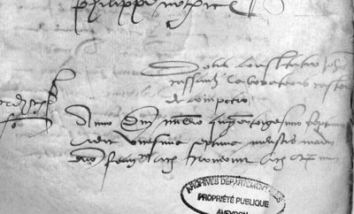 Contrat de futuro et de sponsalibus fiendis (de mariage à venir) entre Johannes Cassanh laborator (travailleur, laboureur), fils de feu Johannes du castrum (bourg) de Compeyre, [1] paroisse de Notre-Dame de Lumenson, et honnête femme Francezia Jalvina, fille de Petrus Jalvi, hospes (hôtelier) du bourg de Compeyre. Ledit P. Jalvi et Anthonius Jalvi, père et fils [2], assignent en dot audit J. Cassanh gender (gendre) de l’un et cognatus (beau-frère) de l’autre ainsi qu’à Francezia ; au titre de ses droits paternels, maternels et fraternels :