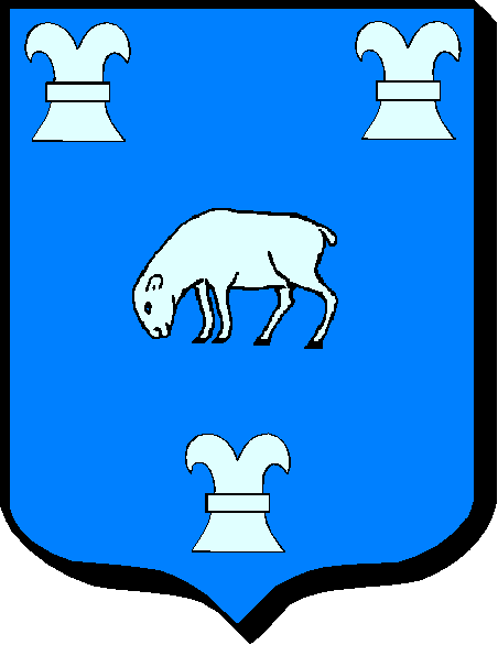 D’azur à l’agneau de lait accompagné de trois rocs d’échiquier, le tout d’argent.