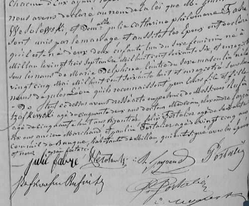 Guillaume Wesolowski [4], né à Belgard (Poméranie) en 1805 de Frédéric, officier de cavalerie, et d’Amélie Grotter, arrive à Rodez en provenance de Bourges le 11/10/1833. Il épouse Marie Sophie Cabantous, fille d’un fabricant gantier calviniste, à Millau le 30/1/1835 en présence de plusieurs officiers polonais : Czarnecki, Chylinski et Scieczkowski.