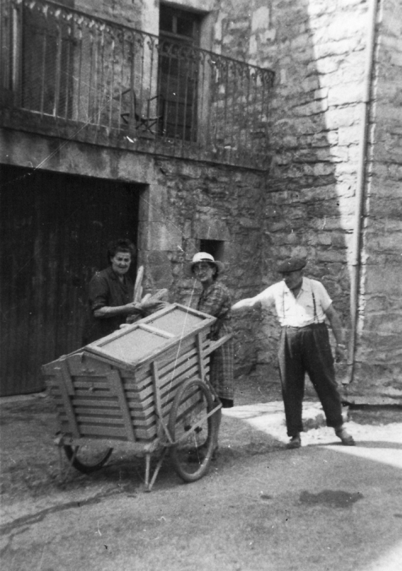 A noter que la distribution du pain se faisait aussi tous les jours dans les rues du village au moyen d’un charriot (carretou) ce qui évitait les clients de se rendre à la boulangerie, En principe les Hoches étaient pendues au bras du charriot.