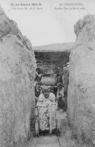 Juillet 1915 Bruits de pioches ennemies, écoutes au microphone.....le 16/1 charge un fourneau de 2.000 kg de dynamite pour contrer les sapeurs ennemis, opération réussie qui fera un cratère de plus de 20m de diamètre.....