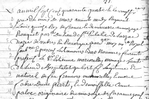 26 mars 1744, Contrat de Mariage entre Etienne Marcorelles et Anne Paloc,