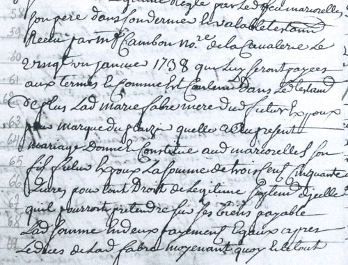 59-Receu par M(aîtr)e Cambon No(tai)re de la Cavalerie le