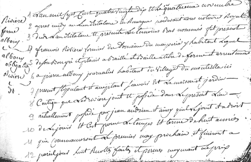 Atelier Paléographie de février 2018 Article mis en ligne le 20 mai 2018 dernière modification le 15 mai 2018 par Patrick OZANNE Traduction de la sénce de février