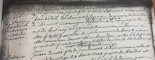 MORT d’Antoine FAUTEUIL dit clermont, soldat de Navarre