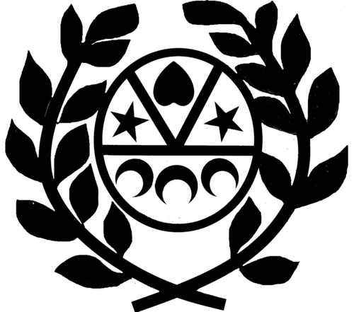 L’écu est soutenu par deux rameaux de feuillage, sans doute de laurier, les tiges passées en sautoir normalement en pointe, c’est à dire au dessous du blason.