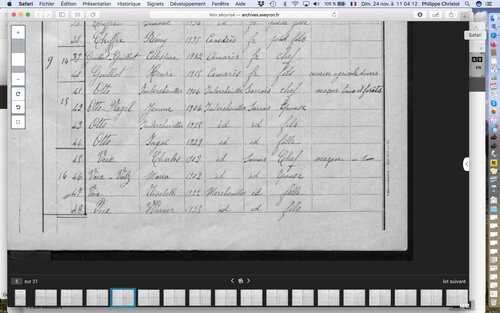 Il faut souligner pour conclure le travail effectué sur tout le département par la généalogiste professionnelle Christine Cheuret [4] qui a relevé l’essentiel des quelques dizaines de milliers de documents sur les étrangers présents aux Archives de l’Aveyron (principalement séries 4M et W) sur une base de données qu’elle met à disposition sur son site ; avec la liste viennent de nombreux documents dont ceux en illustration de cet article.