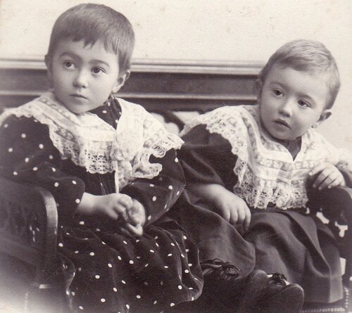 Nous avons dans les archives familiales les deux photographies ci-contre (celle de gauche est datée d’Avril 1908) , correspondent elles à Rose Julie et à Marcel Alexandre Justin ? Les dates semblent cohérentes. La photographie de droite est plus tardive.