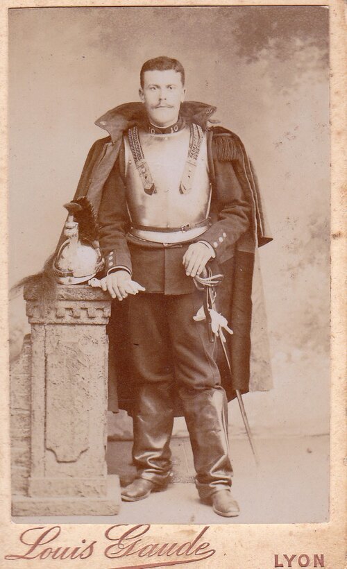 Selon la tradition familiale, il vint « faire son service militaire en France », très probablement au début du XXe siècle. Dans quelle arme ? Ci-contre son portrait. Nous voyons que la photographie fut prise à Lyon et en observant l’uniforme nous sommes tentés de penser qu’il était cavalier au 7ème dragon.