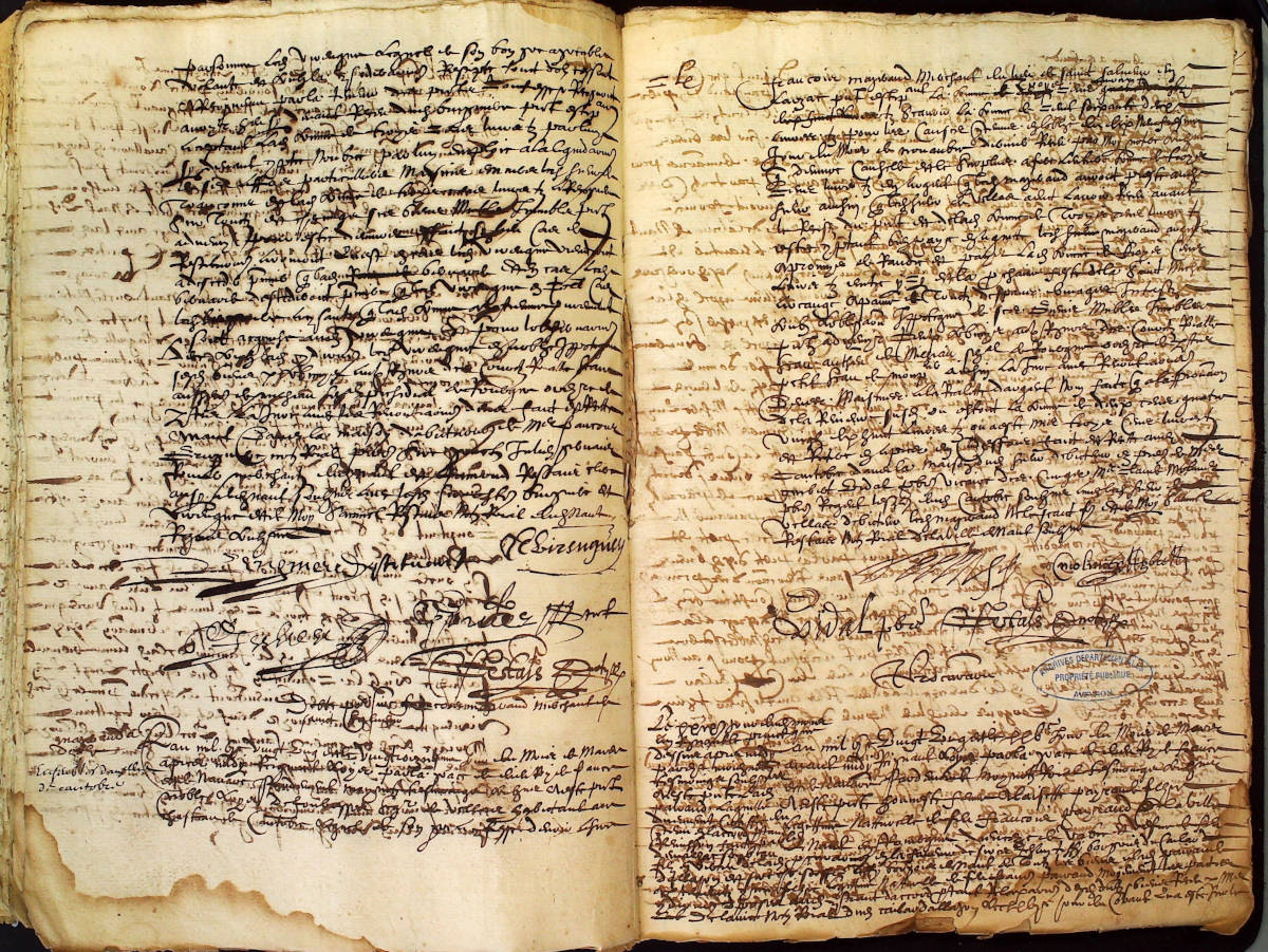 [Fol. 160] 1621, 25 mars.-« Houneste femme » Alaisette Payraude, fille de feu François Payraud, de la ville de Nant, veuve [Fol. 160 vo] de « Vincens Seguin dict le Cappitaine Lacombe » [1] déclare que comme fille de feu François Payraud « pour obtenyr adjudication et maintenue de toutz et checungs ces ( ?) biens, à elle apartenentz et parvenus sur les biens de sond. feu père, tant à raison de son décès, donations par luy faictz en la faveur de lad. Payraude, que par toutz autres bons, loyaulx droictz et tittres, elle en auroict formé instance devant les officiers ordinaires de la ville de Nant contre Me Jacob Payraud son nepveu, tenantier et occuppacteur desd. biens, obtenu une sentence desd. ordinaires, de laquelle led. Jacob Payraud en auroict rellevé appel en la court de Mr le sénéchal de Rouergue pour enpêcher son exéqution et se jacte porsuyvre autre appel en la souveraine court de parlement de Thoulouze et en icelle fère donner divers arrestz sur plusieurs et divers chefz de leurs contestations ; faisant ce à cause de la pouretté et misère quy est nom sullement à elle, mais ausy envers noble Pierre de Malhac, son beau-filz, mary de Margueritte Lacombe, pansant par tel moien priver lad. Pairaude de ses biens (et) droictz, comme estant desnuée de commodittés et acistance de parantz et amis, qu’est cause qu’iselle Halaisette Pairaude ne désirant qu’elle ny sad. filhe resoivent ( ?) telle perte et incomoditté, comme elles feriont [pour feroint] par la perte desd. biens, de son bon gré, agréable volanté, sans révocation des procurations par elle sy-devant faictz, de noveau a faict constitue son procureur espetial général… sçavoir est led. noble Pierre de Malhac, son beau-filz, ilec présent, aceptant… pour s’acheminer au lieu du Cailar d’Allajon… avec le sieur Jehan Tiffy, borgois dud. lieu, nepveu de lad. Pairaude, tracter de ces conventions et accord des biens et droictz que peuvent comppeter et apartenyr sur les biens dud. feu François Pairaud, à lad. Pairaude sad. filhie et à elle parvenus par quelz moiens… que ce soinct, iceulx biens et droictz… aud. sieur Tiffy et en sa faveur pour et moyenant telle somme d’argent qu’entre lesd. Tiffy et de Malhac sera [Fol. 161] advisé, tracté, accordé à la charge toutesfois que icelle somme que led. Tiffy accordera à lad. Pairaude, par l’entremisse dud. de Malhac sond. procureur, sera et demurera quitte à lad. Pairaude à luy estre payée à telz termes que par sond. procureur sera advisé en obligant led. Tiffy fere les poursuittes dud. procès contre led. Jacob Pairaud pour les adjudications, liquidations desd. biens et droictz à ses fraix, costz, despans, en luy remettant le touct, à le porsuyvre à ses périlz, asartz, fortunes, sans que lad. constituante luy soict ny demure tenue d’aulcugne garantie de présent ny à l’advenyr…