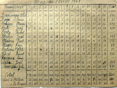 Petit rappel : En mai 1943, ils étaient 12 agriculteurs à livrer du lait à la coopérative laitière, ceux qui n’avaient qu’une vache en apportaient de 3 à 12 litres par jour, d’autres jusqu’à 90 litres.