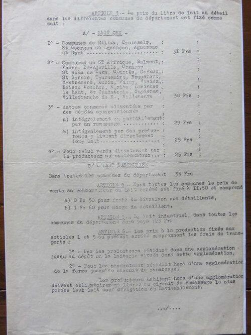 34 francs en 1955, payé 26,50 francs aux laitiers ; 35 francs en 1956 ; 39 francs en 1957 ; 40 francs en 1958.