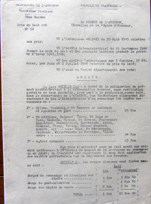 En 1954, la coopérative agricole « Le Lait Millavois » payait le lait 28 francs le litre, avec une retenue provisoire de 2 francs le litre, à la coopérative de Nant.