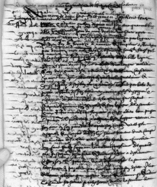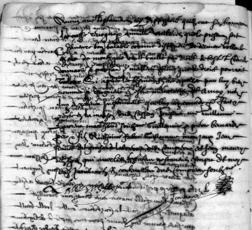 Il arrive que certains documents, même du XVIIème siècle soient un peu difficiles à décrypter, et nous remercions M. Jean DELMAS pour son aide toujours efficace ! Cette fois, la difficulté vient de la noirceur du document (Qualité du papier ? encre ? plume ?). Quelques mots ont échappé, mais il ne semble pas que cela affecte l’essentiel.
