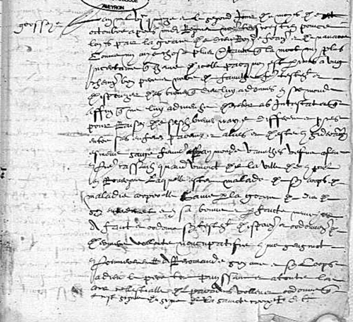 2- Item, elle lègue à Estienne et Jehan Cassanhs, ses fils, à chacun pour les droits qu’ils pourraient avoir 15 livres t., soit 10 livres quand ils se marieront ou prendront un métier ou qu’ils auront l’âge de 25 ans, et en ce qui concerne les 5 livres restantes, deux ans après, 50 sous chaque année à la Toussaint, « et que quand l’ung lèvera [2] ung an, que l’autre ne puysse poinct lever, mais l’ung ung an et l’autre ung autre an ».
