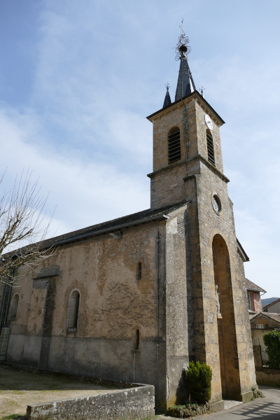 L’église, dédiée à Saint Martial, se trouve au centre du village. Elle possède une abside en cul-de-four. Elle abrite une statue en bois peint datant du XVIIIe siècle et représentant une Vierge à l’enfant qui a été classée au patrimoine des monuments historiques le 5 décembre 1908. Le retable qui ornait l’église paroissiale et qui provenait du couvent des Chartreux de Rodez a aujourd’hui disparu. Le clocher fut réalisé par Boissonnade en 1865. Stèle discoïdale. [4]