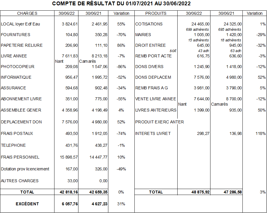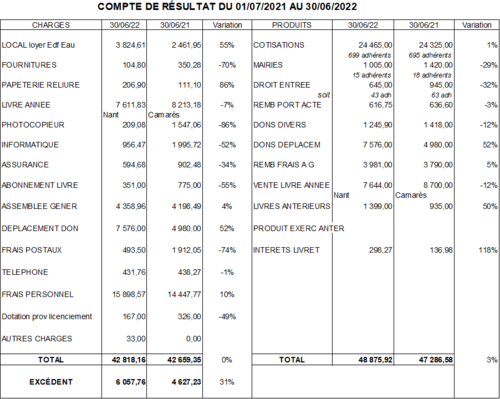 Je vous remercie de votre attention et vais passer maintenant la parole aux trésoriers qui vont vous présenter le Bilan financier de l’année écoulée et le budget prévisionnel de l’exercice 2022/2023.