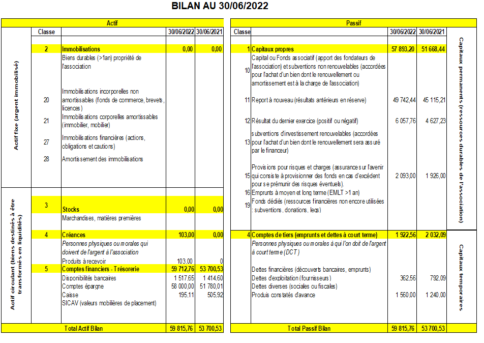 Vous trouverez également dans vos pochettes le bilan financier de l’association.