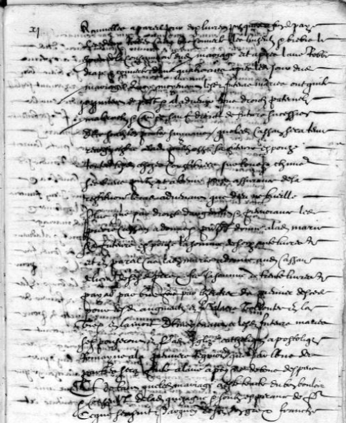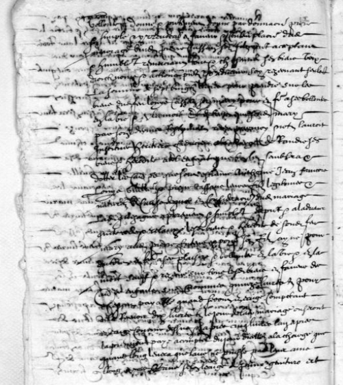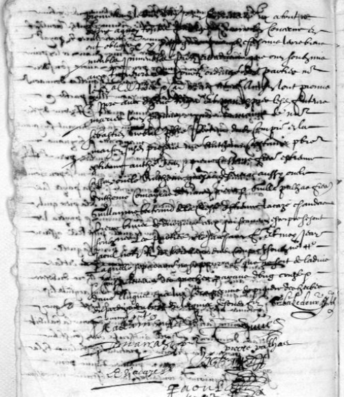 La principale difficulté de lecture du contrat de mariage de Pierre Cassan et de Marie Palhas(se) de 1642, tient non pas tant à l’écriture qu’à la nature de l’encre qui a traversé le papier et l’a parfois rongé. Cependant, on comprend l’acte dans ses principales composantes.