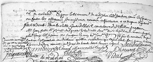 Fait dans la salle haute de l’hôtel consulaire de Millau. Présents, outre les parties, M. Jean Fabre et Jean Vidal, praticiens. Tous signent sauf Suzanne de Malrieu. Descuret notaire.