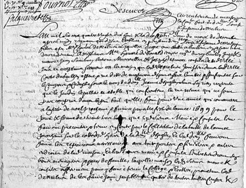 1698, 17 décembre- Demoiselles Louise et Suzanne de Malrieu, filles de feu Mr Charles de Malrieu, baillent par arrentement à MM. Honoré de Bonald, écuyer, conseiller du roi, bailli, juge et maire, Jean Sambucy, Antoine Marcorelles et Joseph Descuret, consuls de Millau, la maison qu’elles ont dans la ville, carte de Guilhem Esteve et rue dite de Matarou (?) [1], mentionnée sur le compois sous le nom de Demoiselle Jeanne D’Hugla, [2]. sans rien réserver sinon le jardin, le pallier et étable, qui confrontent la rue Neuve, pour une année, de Noël 1698 à Noël 1699, pour le prix de 33 livres que les maire et consuls leur feront compter par le collecteur de la taille de l’année 1699, sur la cote des héritiers de la Demoiselle Dhugla. Elles feront faire les réparations nécessaires aux toits, portes, fenêtres, etc. Les maire et consuls l’entretiendront et y tiendront le collège et les écoles...
