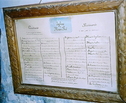 L’église a été restaurée en 1927, de nouveau par les habitants, ils étaient 46 donateurs, liste signée par le curé Hippolyte Arnal.