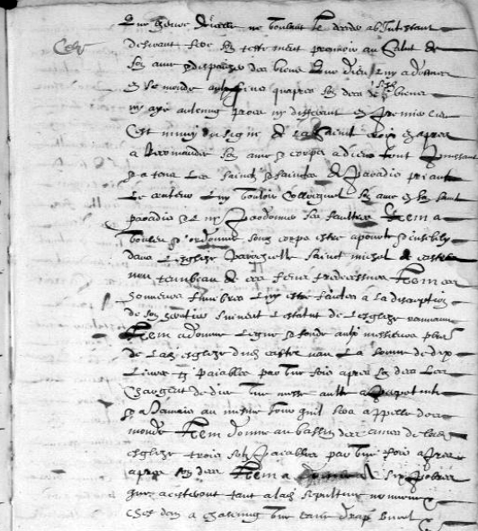– Il s’est muni du signe de la Croix, se recommande, âme et corps, à Dieu et à tous les saints et saintes du Paradis, priant le Créateur de colloquer son âme en Paradis et de lui pardonner ses fautes.