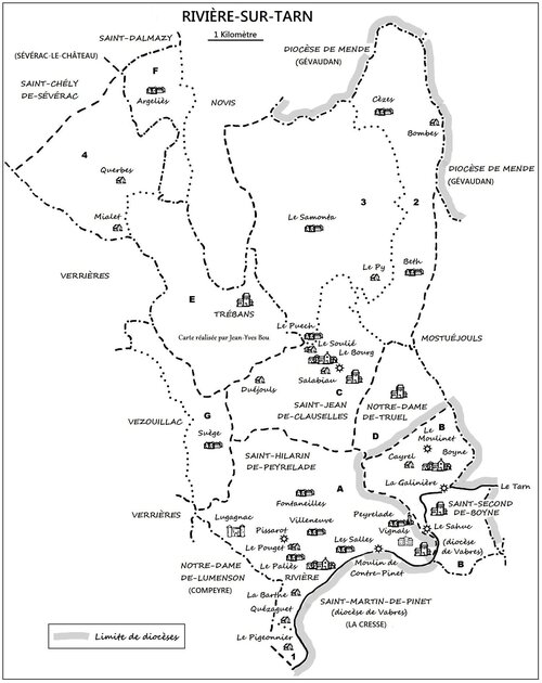 Jusqu’à la Révolution, Peyrelade fut le chef-lieu d’un mandement de ce nom qui avait à peu près les mêmes limites que la commune actuelle de Rivière-sur-Tarn.