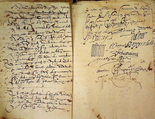 « Et tout incontinent, lesdicts futeurs, de licence que dessus, ont juré entre les mains de Me Jean Sabatier, prêtre et vicaire de Saint-Segond, qui les a affiencés, [Fol. 119] y aient procédé aux sérimonies de l’Esglise suivent le saint Consille... »