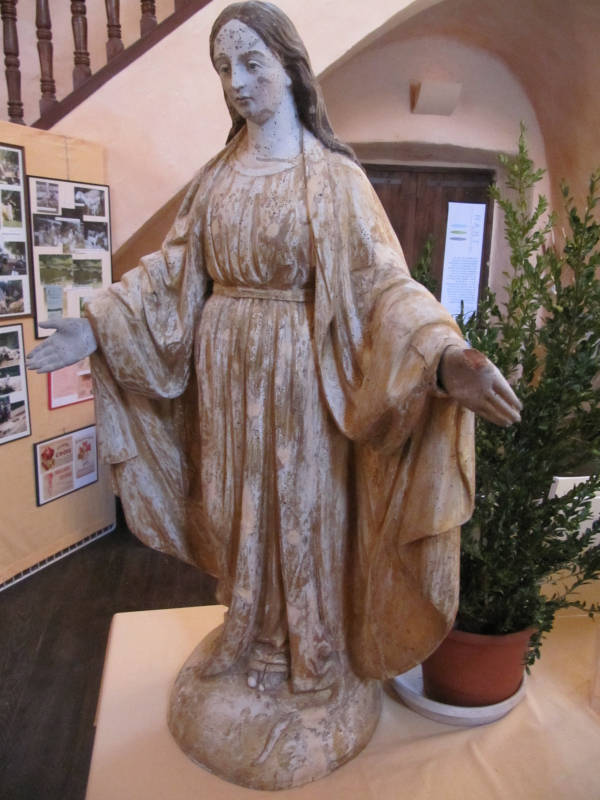 De près, la statue apparaît en bien mauvais état, mais digne d’être restaurée car il n’est pas trop tard. Madame Delmas, à la vue des photos que j’avais prises ce jour-là, me l’a confirmé et m’a conseillé de la confier à Mr Ulysse Lacombe de Lioujas, qui travaille régulièrement à la restauration de nombreuses œuvres d’art de la cathédrale de Rodez. Il doit aller la voir pour apprécier le travail mais sur photos il m’a proposé un devis estimatif de 770€ pour la mettre hors de danger.