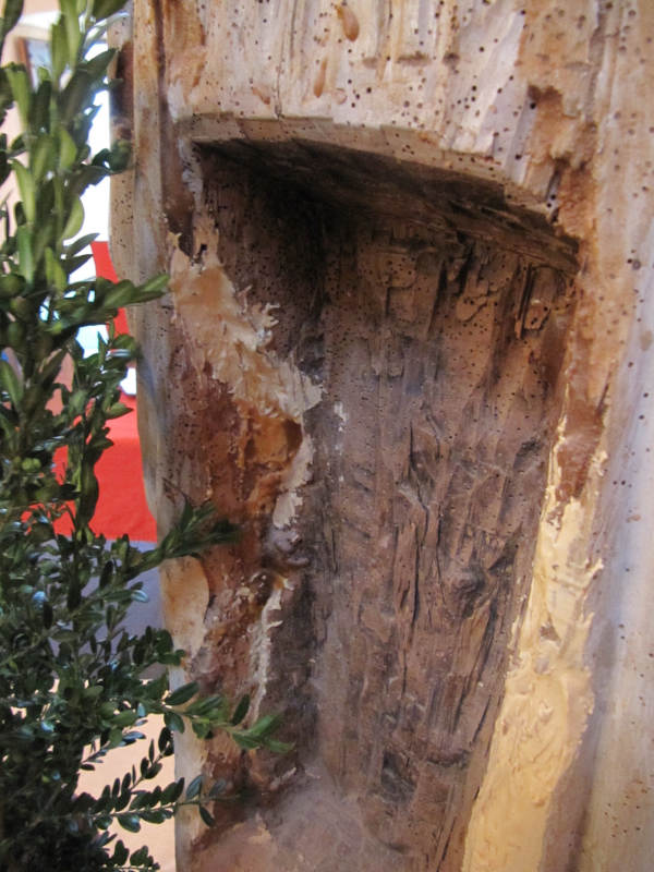 Ce prix comprend un traitement contre les insectes xylophages, une consolidation avec des résines spéciales dans les parties trop rongées, un collage des bras avec une reconstitution du pouce gauche cassé et la réfection du socle inutilisable.