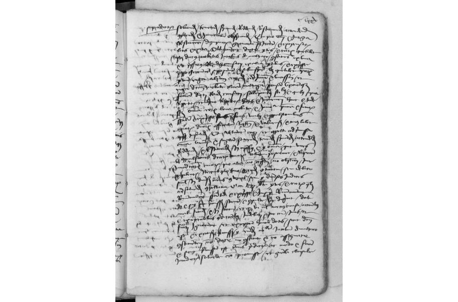– primo, lors du sacrement (a l’anel), 100 moutons (d’or) et une bonne robe de drap, la canne valant 5 écus et une/gonelle de drap, la canne valant 3 écus ; et tout le reste, comme robes, bijoux et bagues, qu’elle reçut à son premier mariage,/
