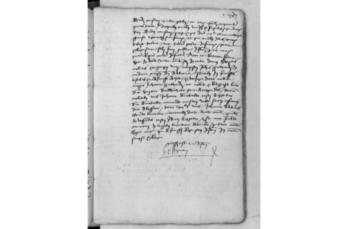Ordonnés et prononcés le 22 janvier de l’an 1470 (ancien style), avec pacte que si quelqu’une des parties ne respectait pas les termes et les conventions, la partie [ligne 25] infidèle (?) remettrait à l’autre 25 marcs d’argent. Et cet engagement, les parties l’ont souscrit et signé de leurs propres mains, l’an et le jour susdits.