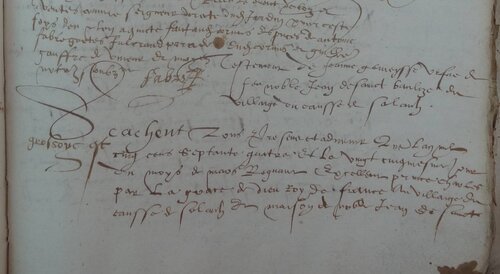 – Si ledit héritier mourrait sans aucun enfant légitime et naturel, ses biens reviendraient au susdit Jean de Sainct-Baulize son fils et à ses hoirs.