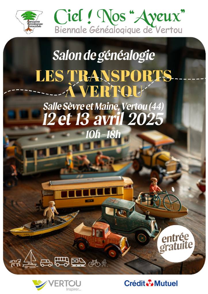 L’Association généalogique vertavienne organise une nouvelle édition de sa Biennale généalogique de Vertou (44) les 12 et 13 avril 2025.
