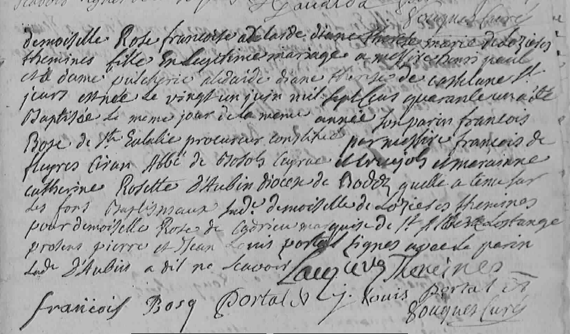 Marraine : Catherine ROSETTE d’Aubin du diocèse de Rodez. [8]