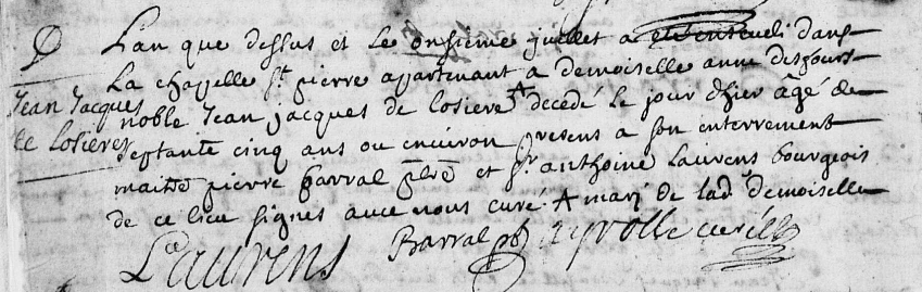 Noble Henry-Paul de LAUZIÈRES né le 5 mai, fut baptisé, à Saint-Beaulize, le 7 mai 1679. . Parrains : "ses aynés frères". Marraine "ses aynéees sœurs". [3]
