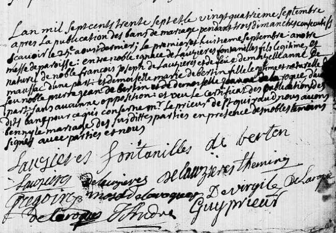 Henry-Paul de LAUZIÈRES contracte mariage le 12.07.1738, à St Tropez devant Me George Martin, avec Pulcherie-Adélaïde-Diane-Thérèse de Castellane de Saint-Juers (alias Julie).