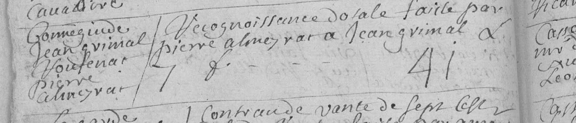 En 1689, le notaire Delmont de Cassagnes-Bégonhès, enregistre une reconnaissance dotale faite par Pierre Almeyrac à Jean Grimal. Il fait alors résider ce dernier à « Bonneguide », [14] même chose en 1691, lors d’une vente de foin faite par Laurens Salecroup de Bonneguide à Pierre Long de Ginestous. [15]