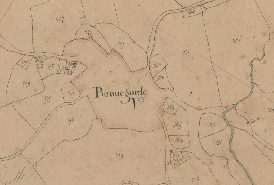 D’après les registres paroissiaux de La Capelle-Farcel, on peut également parler de la présence d’une famille Nespoulous (Jean Nespoulous meurt le 27 février 1680 au village de Bonneguide) [9] de la famille Bibal (Jean Bibal et Marie Boudonne de Bonneguide perdent leur fille Marie le 4 août 1681) [10], d’une famille Terral (lors du mariage de Catherine Terral en 1682, on apprend que Nicolas Terral (décédé lors du mariage) et sa femme Jeanne sont installés à Bonneguide), d’une famille Angles (en atteste l’acte de baptême d’Anne Angles, fille de Bernard Angles et Marie Bousquet) [11], d’une famille Salacroup (acte de baptême de Jean Salacroup en 1684), d’une famille Creyssels (ou Creissels) (d’après l’acte de baptême de François Creissels) [12] cette famille semble liée aux Alibert déjà présents.