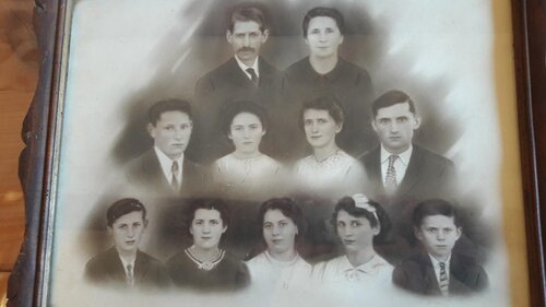De haut en bas et de gauche à droite : Ernest Canac et Lucie Galtier, Lucien, Madeleine, Thérèse, Louis, Denis, Marie, Odile, Solange, Abel (1943)