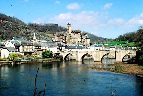 Le Pont gothique sur le Lot (classé au patrimoine mondial de l’UNESCO) porte la statue de François d’Estaing, évêque de Rodez, qui fit construire ce pont, de 1501 à 1529. L’ouvrage était emprunté par les pèlerins sur le chemin de Saint Jacques de Compostelle.