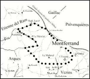 Finalement, et c’est là une petite énigme, le cadastre ne mentionne pas de site habité portant le toponyme de Montferrand. Où se trouve donc le chef-lieu seigneurial ? Un Montferrand existe dans la commune de Recoules-Prévenquière, mais il ne peut s’agir du même site [10]. En effet, pourquoi la seigneurie de Montferrand porterait-elle ce nom s’il n’existait pas de lieu-dit dans son propre territoire ?