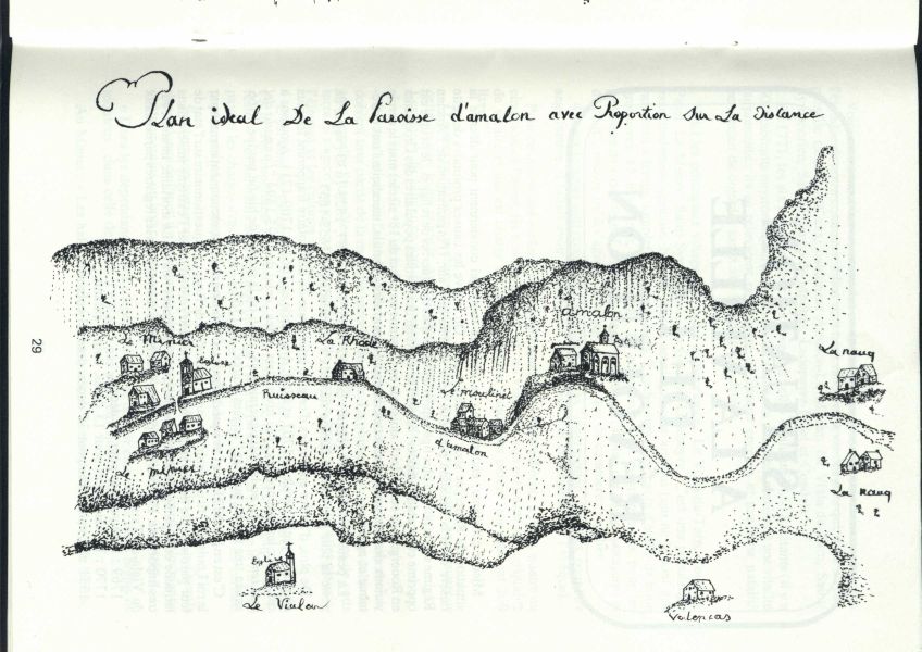 Voici ce qu’il dit : "L’an 1615 et le 24ème jour du moys de décembre, nous maistre François MASNAU prêtre venant de la ville de MACIAC en Gascoinhe serions arrivés au présent lieu du Vialar le 24ème et le 25ème jour et feste de Noël y faict et célébré les troys messes haultes de paroisse et le landemain 26ème aurions prins possession de la recteurie de l’esglise paroichiale dudict Vialar et de ses annexes des Esglises d’Amalon et du Minier, despuis lequel temps nous aurions baptisé aux fonds baptismalx dudict Vialar et enseveli au cementière desdictes esglises du Viala et d’Amalon, lorsque s’en suivent en tesmoing de ce, me suict soubs signé