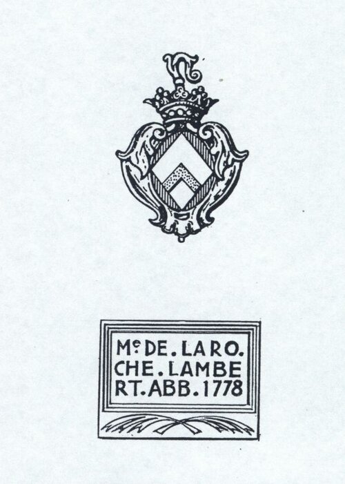 Notes de Robert AUSSIBAL : "La pierre de dédicace, placée au-dessus du claveau central de l’arc-doubleau en plein cintre, fermant ladite chapelle ouvrant perpendiculairement sur la nef, est certainement la pierre de fondation récupérée et réemployée dans la construction. L’inscription nettement lisible, est bien au nom de Madame de LAROCHE-LAMBERT, abbesse, à la date de 1778".
