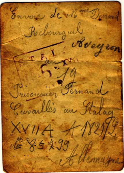 Lettre à un prisonnier, de guerre, originaire de Rebourguil