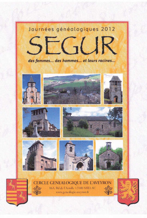 Le CERCLE GENEALOGIQUE DE L’AVEYRON et la Mairie de SEGUR ont le grand plaisir de vous informer que la 26ème Assemblée Générale du CGA ainsi que les 8eme JOURNEES GENEALOGIQUES de l’AVEYRON se tiendront à SEGUR les 8 et 9 Septembre 2012.