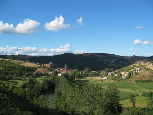 Situé sur un méandre du Dourdou, le village est dominé par le château en grès rouge du XIV° siècle.
